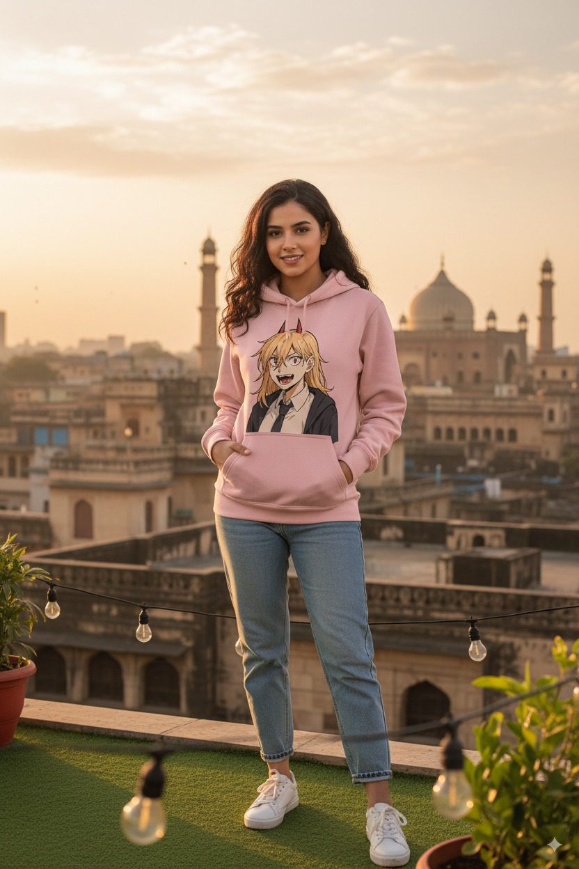 Upgrade your wardrobe with this Anime Power Character Hoodie, designed for true anime fans in Pakistan. Made with premium-quality fabric, this pink hoodie combines comfort, warmth, and a bold anime-inspired design. The front features a vibrant print of a popular anime character with striking details, making it the perfect choice for casual wear, outings, or winter styling.