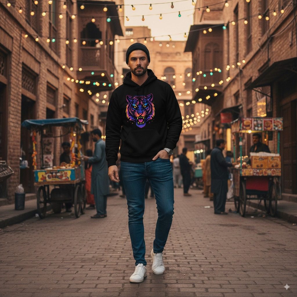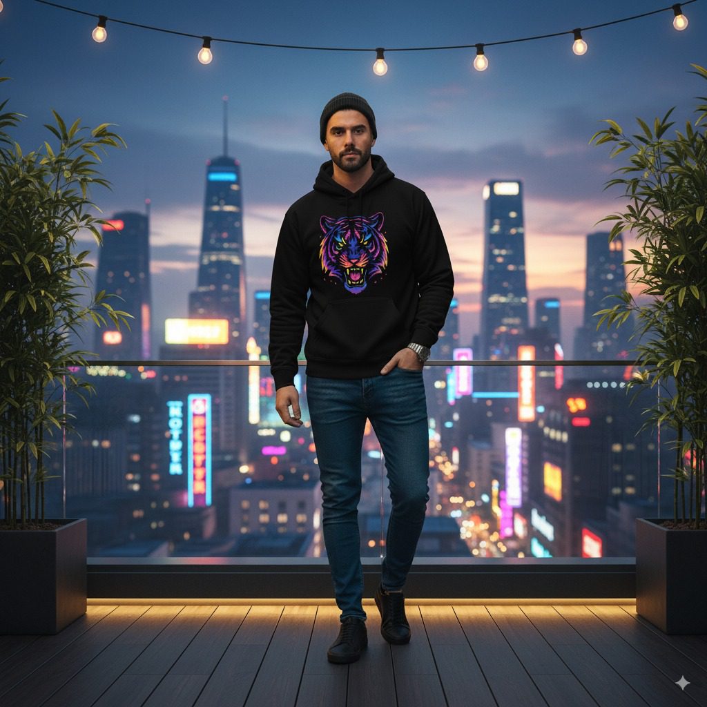 Unleash your wild side with our Neon Tiger Glow Hoodie, designed for those who live bold and fearless.