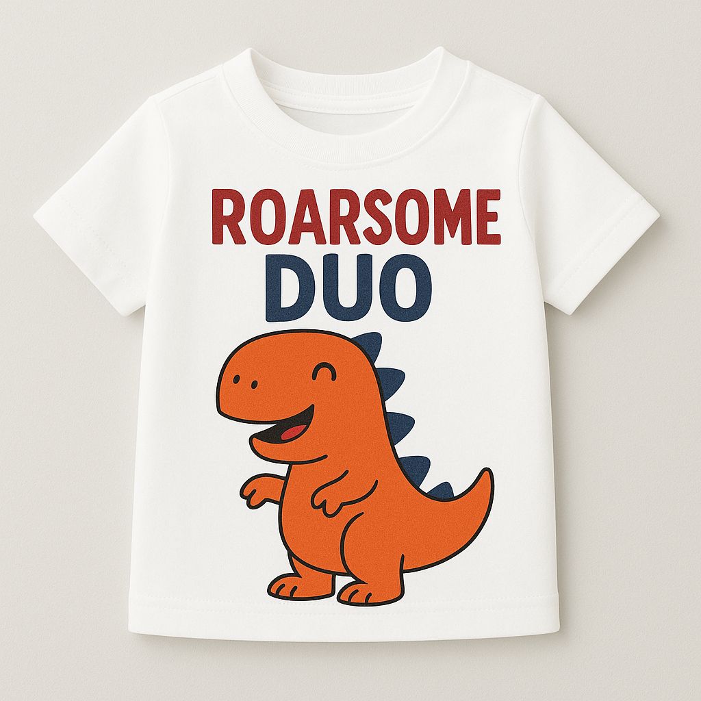 Introducing the Roarsome Duo Dino T-Shirt, a fun and vibrant design that will make your little one roar with excitement! Featuring an adorable orange dinosaur and bold “Roarsome Duo” text, this shirt brings a playful vibe to your child’s winter wardrobe.